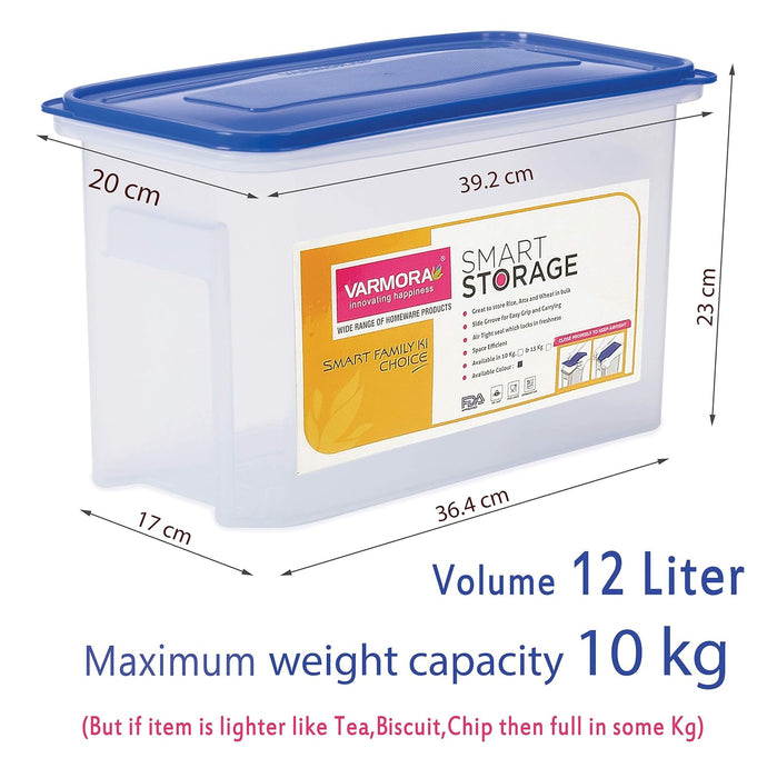 Varmora Smart Storage Containers | Rectangular Plastic Design | Clear Body | Airtight & BPA-Free | 10 KG & 15 KG Capacity