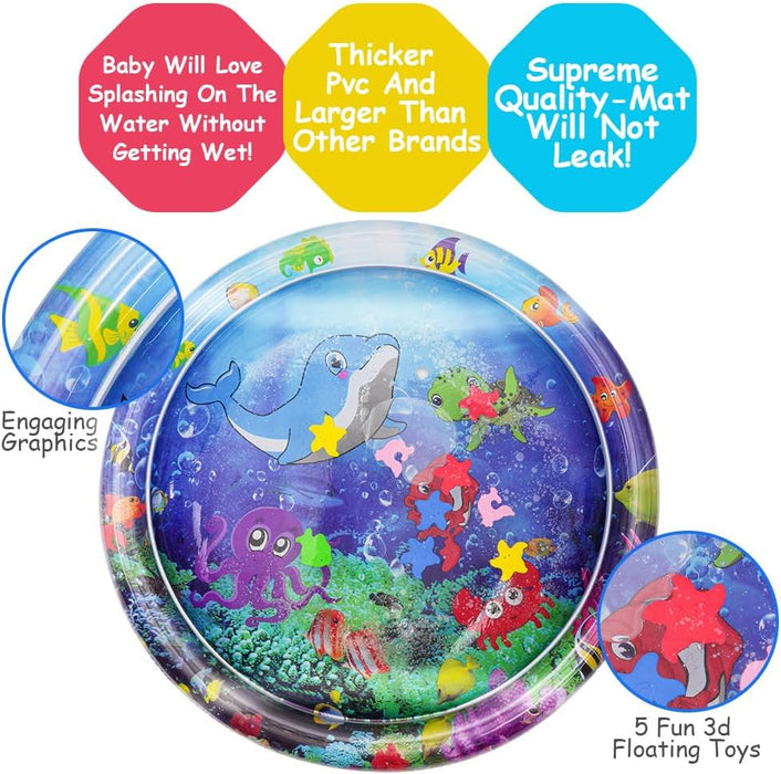 Sea-Themed Play: Inflatable sensory mat with floating sea animals. Encourages interaction through splashing and movement.