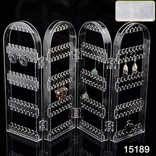 Acrylic Earrings Holder for Women, 4 Doors Foldable Screen Necklace Display Rack, Hanging Jewelry Organizer Double Sided Stand Display, Clear (1 Se...