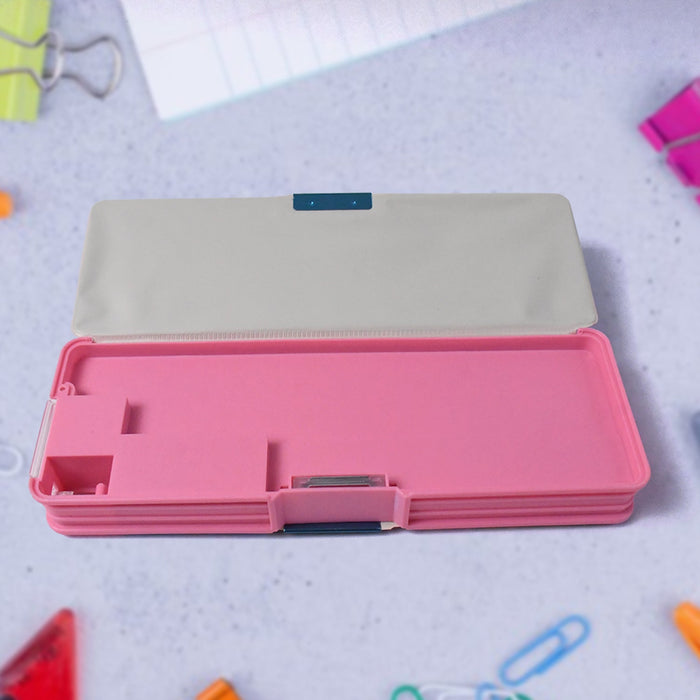 Plastic Multipurpose Compass Box – Double Deck Pencil Case with 2 Compartments & Cartoon Organizer (1 Pc, Mix Design)