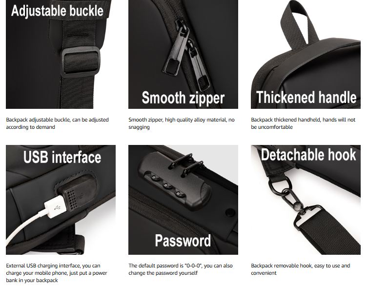USB Charging Anti-Theft Shoulder Sling – Waterproof Sports Backpack