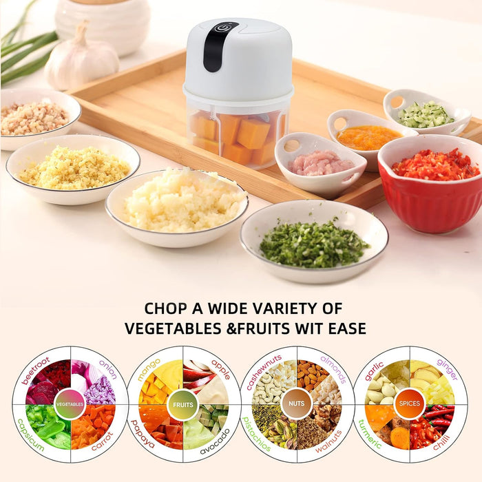 Wireless USB Rechargeable Mini Electric Garlic Machine / Chopper 3 Blades (250Ml)