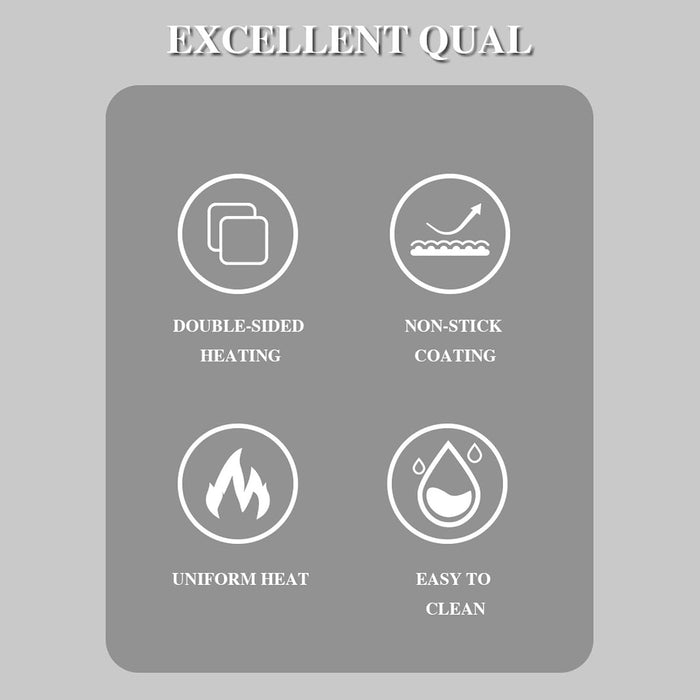 - Fast and Simple Cooking: Just plug in the power supply, turn it on, and then heat it for a few minutes. Double non-stick panel will provide even cooking.