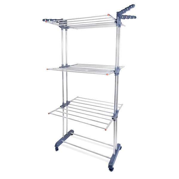 MULTI-FUNCTIONAL DRYING SPACE – Features adjustable trays and dual side wings to accommodate a variety of garments: towels, socks, shirts, sweaters, coats, dresses, and more. 7 integrated hooks on the side wings provide extra hanging options. Foldable rails optimize space when not in use.