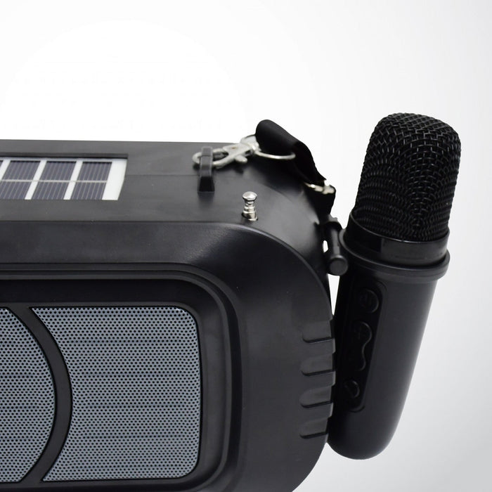 Wireless Bluetooth Speaker 5W High Bass with Wireless Mic / Microphone, LED Torch, Solar Charging, Support USB & Adjustable Strap (1 Set)