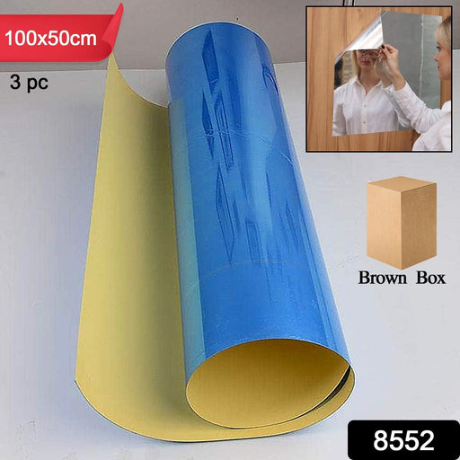 8552 3D Mirror Wall Stickers Wall Mirror Decorative Mirror Paper for Home, Living Room Wall, Bedroom Wall, TV Backdrop Use Paper (100×50 Cm / 3 Pc...
