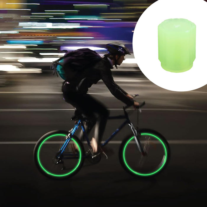 Enhanced Visibility: These valve caps exhibit a striking fluorescent effect on dimly lit roads, lending a sophisticated and radiant appearance to your vehicle. Elevate your nighttime driving experience.