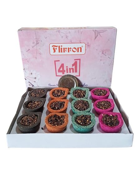 • FLIRRON 4 in 1 Cup Dhoop with 4 Different Fragrances : Rose , Chandan , Mogra And Camphor Guggal