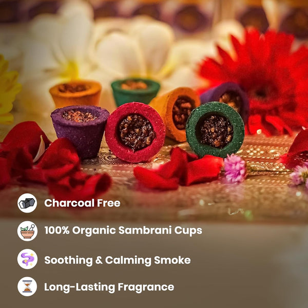 Releases a warm, soothing fragrance enriched with the essence of Sambrani (Guggul), creating a calm and spiritually uplifting atmosphere.