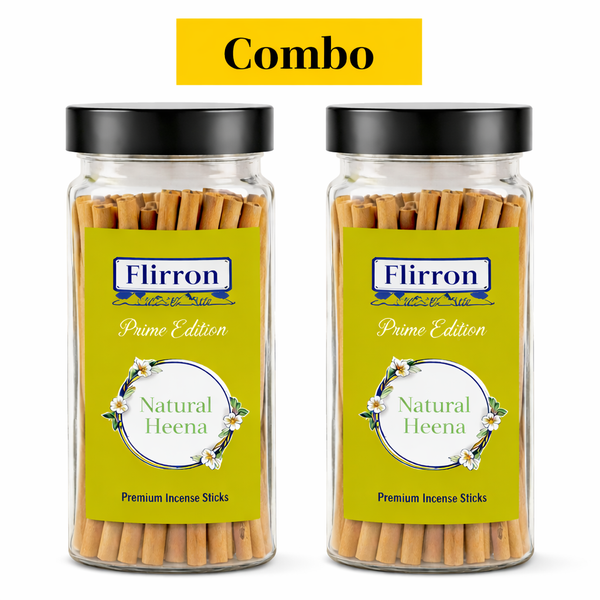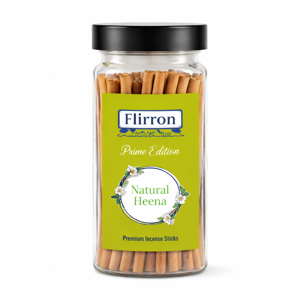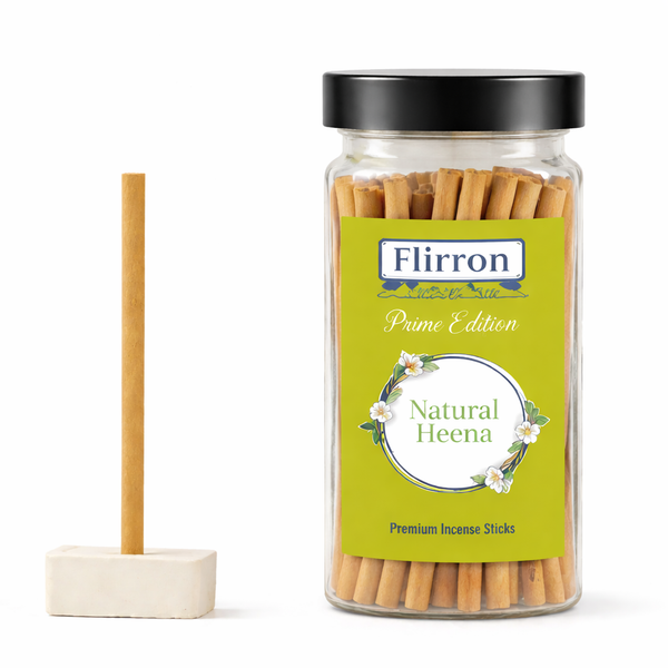 Experience the earthy richness of Flirron Natural Heena Premium Incense Sticks Combo. Crafted under the exclusive Prime Edition range, this premium agarbatti set delivers a deep, soothing Heena fragrance known for its calming and grounding effect.
