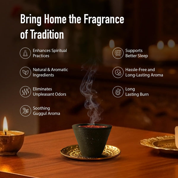 Flirron’s Guggal Dhoop Cup is very effective and creates an aura for pooja, meditation, festivals, and spiritual events.