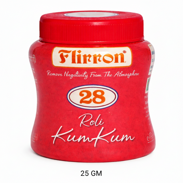 Flirron Roli Kum Kum is a premium-grade traditional red powder specially prepared for pooja rituals, tilak application, and festive ceremonies. Known for its rich red color and smooth texture, it symbolizes purity, positivity, and devotion in Indian spiritual practices.