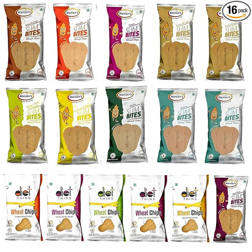 Maniarr's Plain Slim Bites Khakhra with14 Flavors (Combo Pack of 16), 790 Grams Wheat Khakhara, Healthy & Crispy, Low Carb Snack Description:...