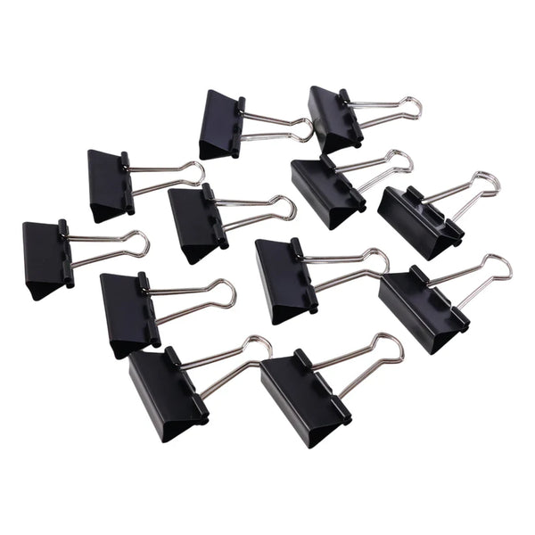 Keep your documents neat and securely fastened with this Medium Size Heavy-Duty Black Binder Clips Set (32 mm). Designed for everyday paperwork, these binder clips feature a durable black-coated metal body combined with strong silver spring handles to deliver reliable grip strength without damaging papers.