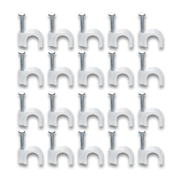 Wire Wall Clips, Plastic Cable Clips Round Wire Pins with Steel Nail for Walls, Office, Home Kitchen Fixing, Ethernet Cable Clips with Nails Cord Holder for Circle Ethernet Cable (20 Pcs Set)