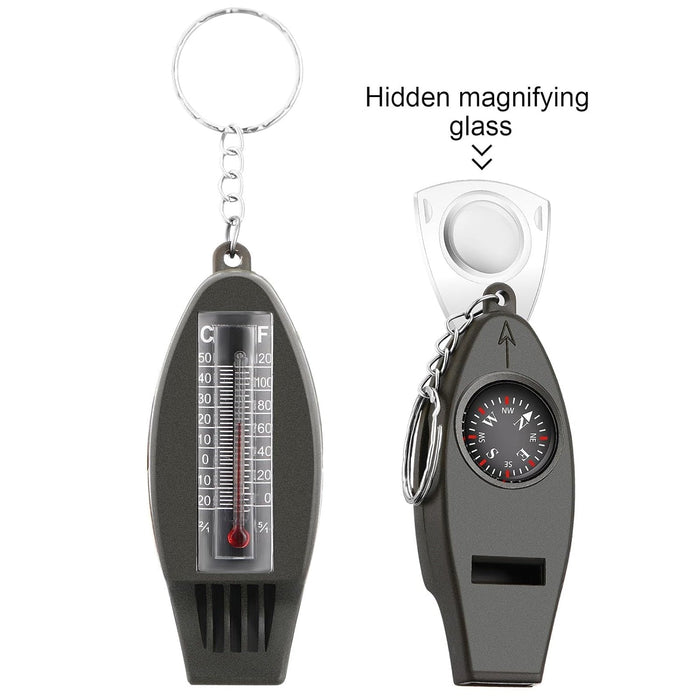 4 in 1 Whistle Compass Magnifier Thermometer Keychain Multifunctional Emergency Survival Whistle for Hiking Backpacking Travel Outdoor Survival (1 Pc)