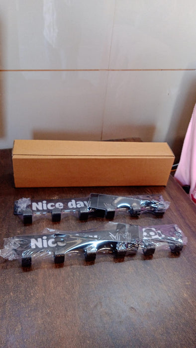 Heavy-Duty Carbon Steel Cartoon Nice Day Over Door Hook Hanger Rack, Towel Hanger, Removable Door Hook, Coat, Scarf, Cloths Hanger (2 pc / 6 Hook / Black Color)
