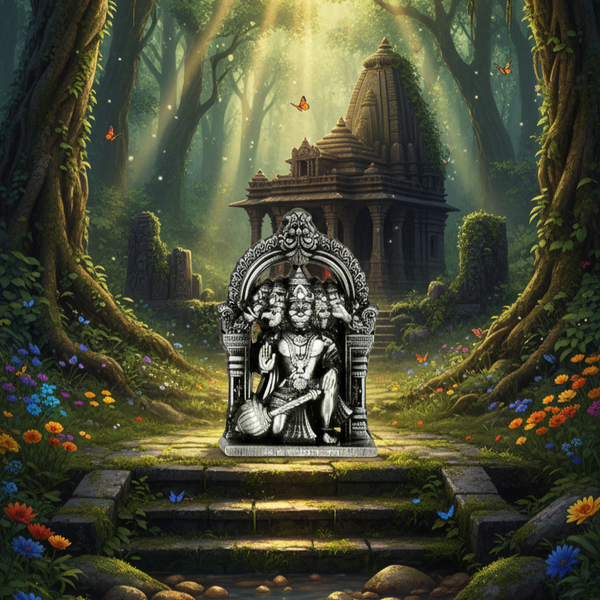 Panchmukhi form: Represents protection from all directions and multiple divine aspects — strength, courage, knowledge, victory and guardianship.