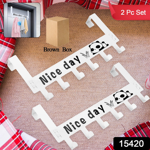 Heavy-Duty Carbon Steel Cartoon Nice Day Over Door Hook Hanger Rack, Towel Hanger, Removable Door Hook, Coat, Scarf, Cloths Hanger (2 pc / 6 Hook ...