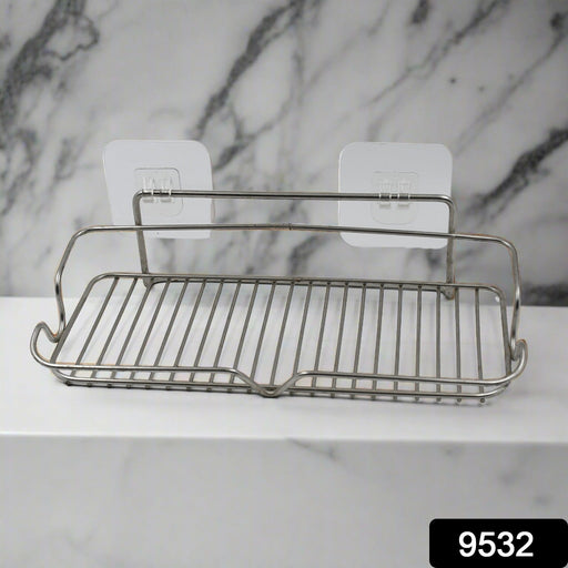 Stainless Steel Kitchen Bathroom Shower Shelf Storage Suction Basket Rack Adhesive Shower Shelf Rack, Wall Mounted Self-Adhesive No Drilling (1 Pc...
