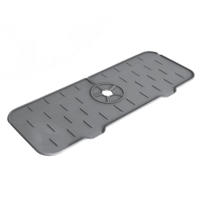 - A sink water splash guard mat specially designed for faucets, the silicone sink faucet splash guard is a labor-saving way to upgrade your kitchen sink. Our silicone faucet splash guard has a raised lip to drain water to the sink. Keep the countertop clean and dry.