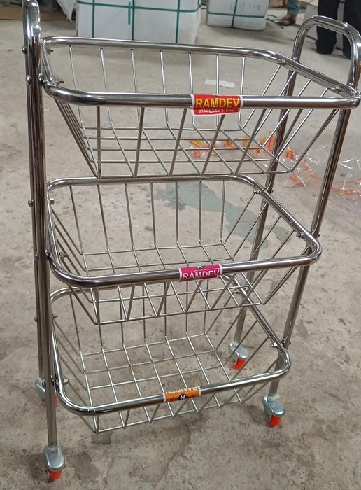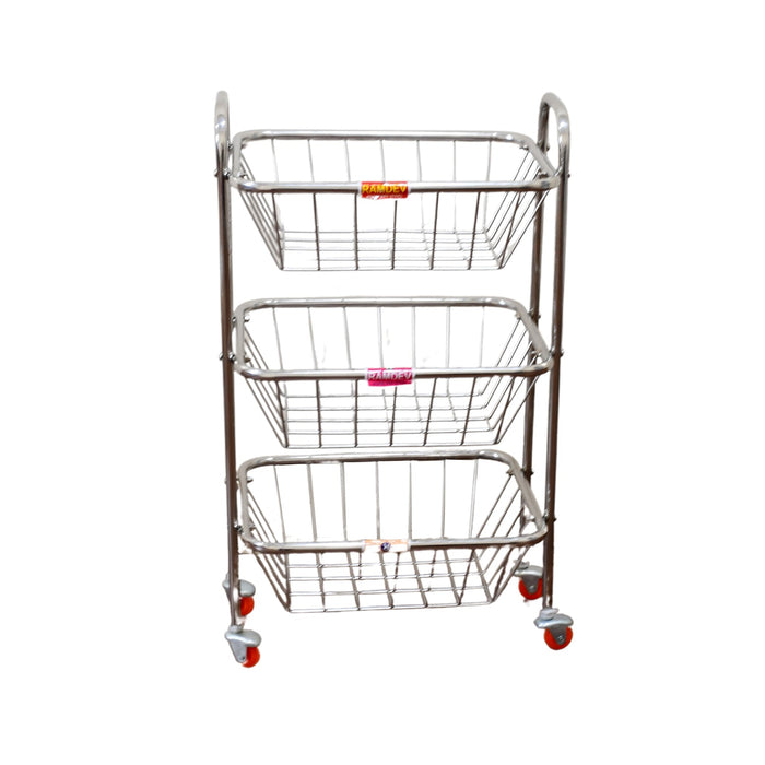 Multipurpose 3 Layer Stainless Steel Fruit & Vegetable 4 Stand Kitchen Trolley | Fruit Basket | Vegetable Basket | Onion Potato Rack For Kitchen | Vegetable Stand For Kitchen