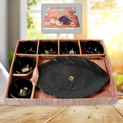 8236 Hello Sweet Round Ceramic Snacks Bowl With Plastic Leaf shape Serving platter Portable, Lightweight Breakfast, Serving Bowl | Ideal for Rice,...