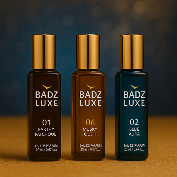 • It consists of Badz Luxe 02 Blue Aura Eau De Perfume, Badz 06 Musky Oudh Eau De Perfume , Badz Luxe 01 Earthy Patchouli Eau De Perfume each for 20ml
