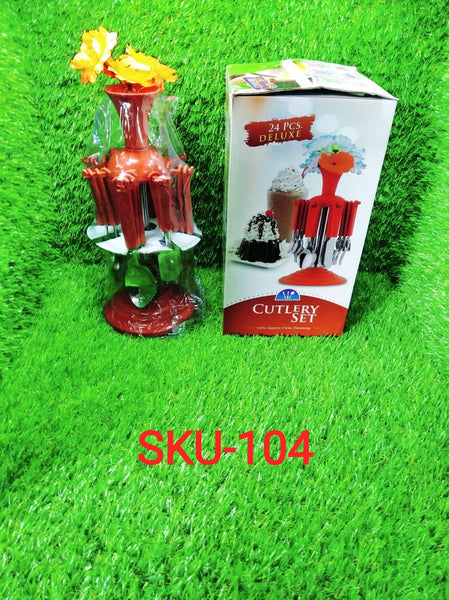 Kitchen Cutlery Serving Set with Revolving Stand Made from Stainless Steel & ABS Plastic (24 Pcs)