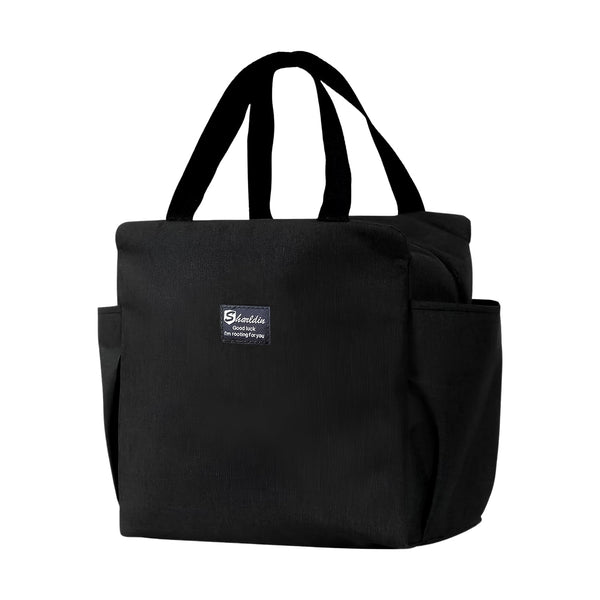 - CONVENIENT STORAGE: This lunch tote bag is designed with a large front pocket which is convenient for you to store your bus pass, keys, cell phone and any other small items. The side pockets are ideal for drinks, bottles, chocolate milk cartons and even umbrellas!.