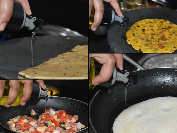 A healthy choice as it gives you complete control over how much oil, vinegar dressing you want on your salad. Olive oil dispenser bottle pours without any mess and has an extra spout for long life