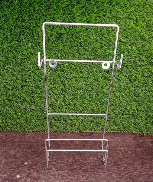 Chakla Belan Stand A compact product which can be mounted on the wall and can beautifully hold the chakla and belan. This chakla stand has four hooks for hanging various kitchen Essensials. It is made of mild steel and has a high quality chrome plating finish.