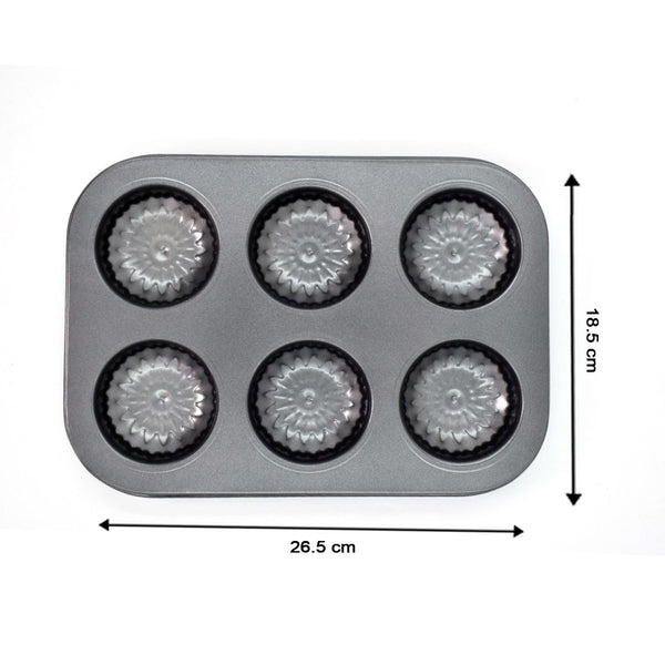 - 6 cups round non-stick mould helps in baking cup cakes, muffins, pancakes, deep bun, brownies, doughnut etc.