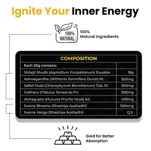 - Premium Quality: Our Shilajit Gold Resin is crafted with the finest quality shilajit, ensuring a pure and potent product for both men and women.