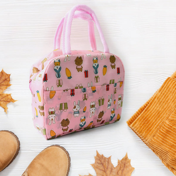 - CONVENIENT STORAGE: This lunch tote bag is designed with a large front pocket which is convenient for you to store your bus pass, keys, cell phone and any other small items. The side pockets are ideal for drinks, bottles, chocolate milk cartons and even umbrellas!.