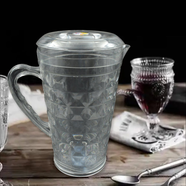 - Beautiful, shatterproof water pitcher with a diamond cut design.