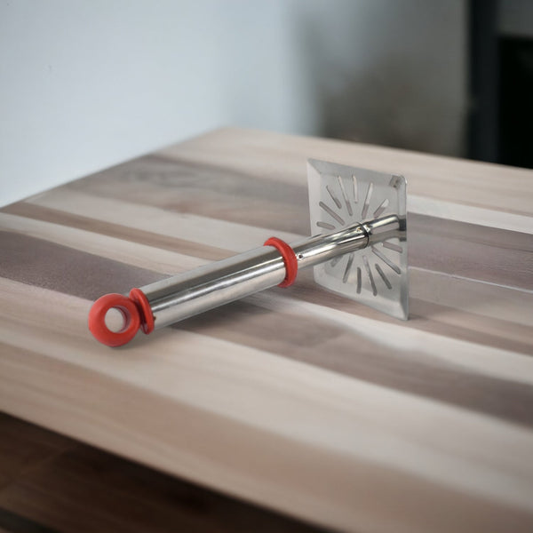 The vegetable masher comes with an ergonomic handle. The handle makes the job of mashing large batches of vegetables a breeze. The handle is insulated which prevents your hands from scalding while mashing hot vegetables.