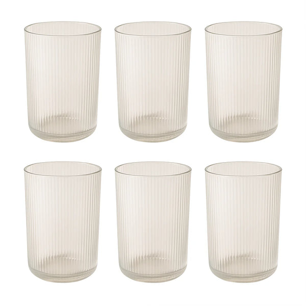 Supermom Casa Glass Set – 6 Pieces, 300 ml Tall Ribbed Transparent Glasses for Water, Juice, Cold Drinks & Daily Beverages