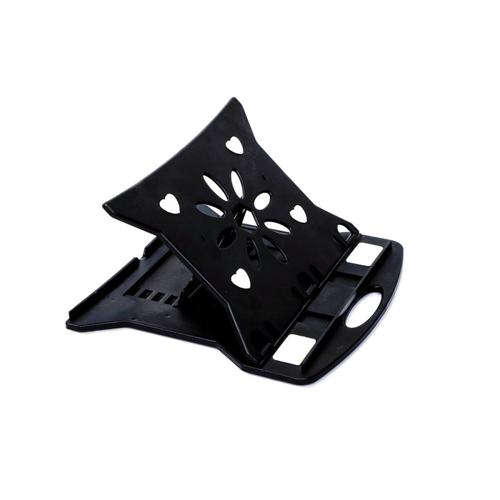 - To prevent your computer from overheating, the laptop stand has large cut-out vents and adjustable height options that allow air to circulate from all sides. Well vented.