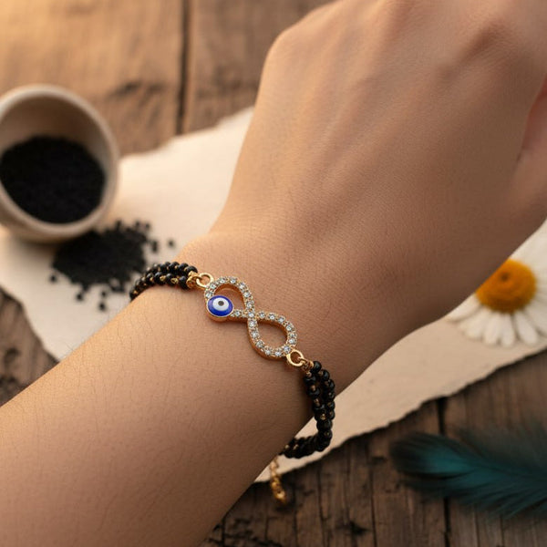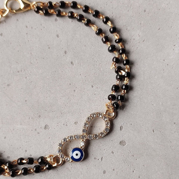 ♾️🧿 Elegance meets meaning in one beautiful bracelet. This Infinity Evil Eye Mangalsutra Bracelet is crafted to sit gracefully on your wrist, combining the symbol of infinite love with the protective energy of the evil eye. Minimal, modern, and filled with purpose 💛.