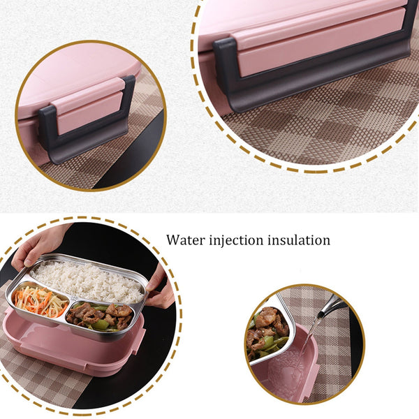 - This stainless steel tray is detachable, because another useful feature of this lunch box is that you can pour some hot water to heat the food before eating. This will keep the original taste of the food.