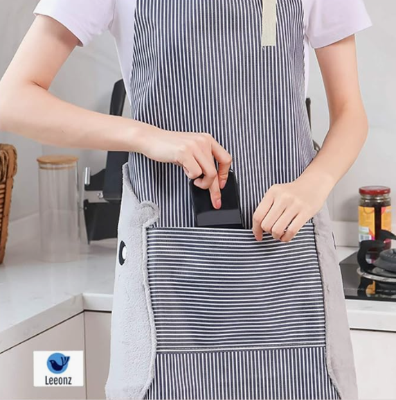 Spacious Front Pocket: Designed with a large front pocket for convenient storage of essentials like your phone, recipe cards, or tools—keeping everything within easy reach. Includes two side coral velvet towels for quick and effortless hand wiping while you work.