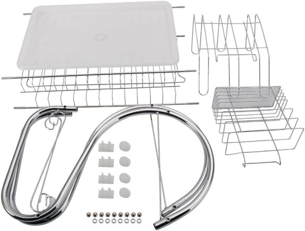 Its open design and plastic drip catcher on the bottom, this kitchen dish rack is great for air drying all of your favorite dishes. The drip catcher makes it perfect for sitting on your counter top without getting it wet.