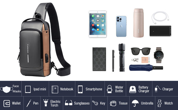 Stay connected on the go with the USB Anti-Theft Shoulder Bag. Just plug in your power bank and charge your devices anytime, anywhere.