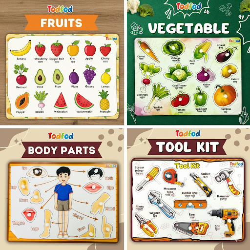 ๐ Early Recognition Skills โ Helps children identify vegetables, fruits, tools, and body parts while learning shapes, colors, and functions.