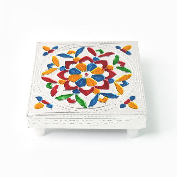 Handicraft Meenakari Wooden Chowki Puja Bajot For Home & Office Decor for Puja Multicolour (1 Pc Set)