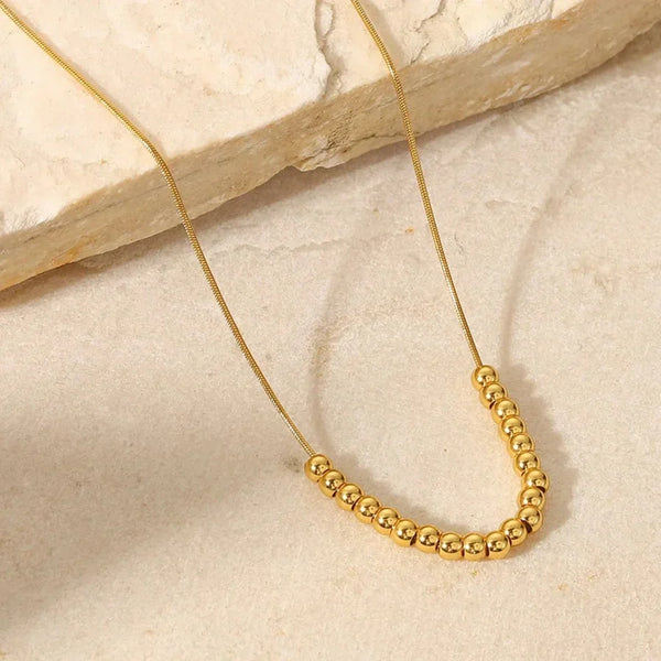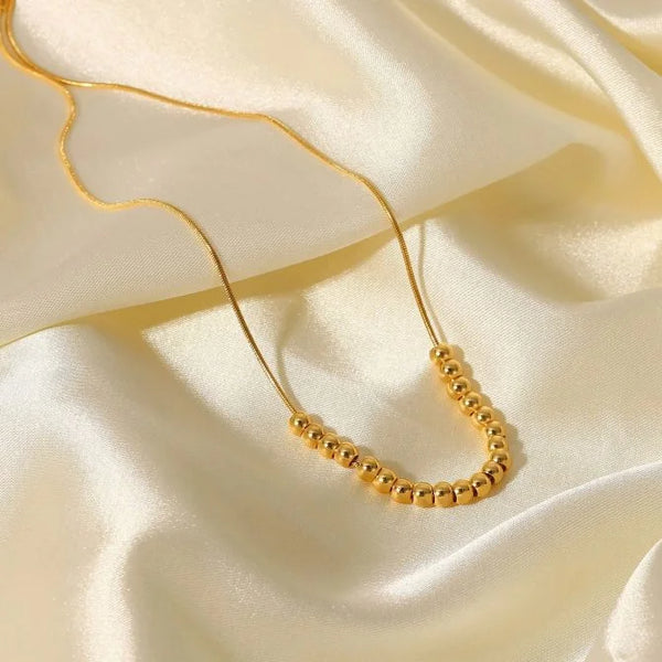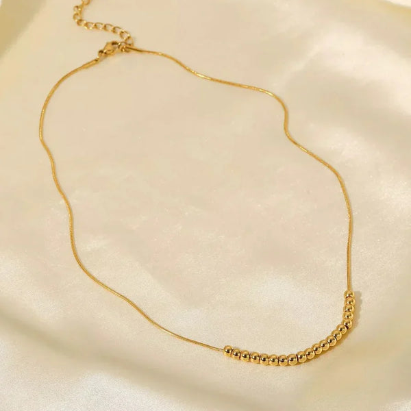 Delicate, modern, and effortlessly elegant, this Dainty Beaded Golden Ball Necklace is designed for everyday shine. The tiny golden ball details sit beautifully on the chain, adding a minimal yet stylish charm to your neckline.